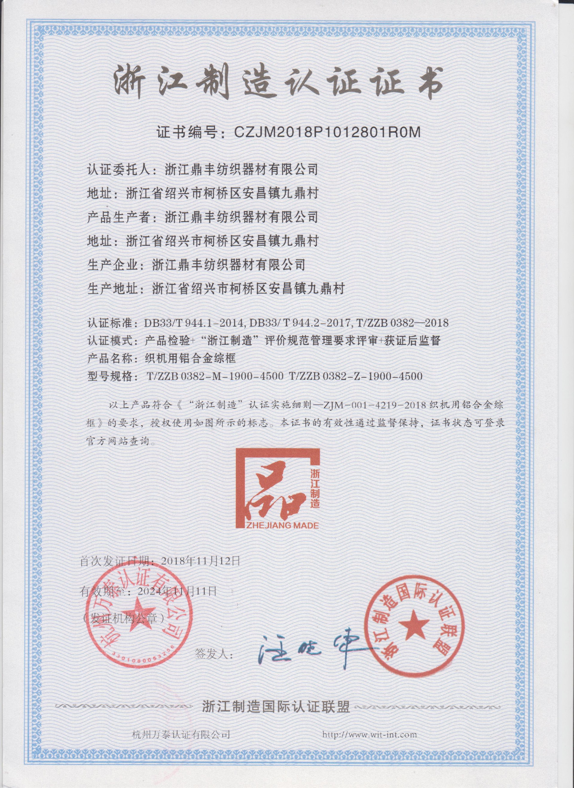 公司現(xiàn)有固定資產(chǎn)6000余萬元,員工300余人,現(xiàn)具有年產(chǎn)噴氣異型筘12萬米,劍桿筘32萬米,噴水筘5萬米,綜框20萬片,鋼片綜2億片,停經(jīng)片1.5億片, 織軸1.2萬套的生產(chǎn)能力。公司“越泉”商標(biāo)被評(píng)為“中國馳名商標(biāo)”。公司通過ISO9001 :2015國際質(zhì)量體系認(rèn)證,ISO14001:2015國際環(huán)境管理體系認(rèn)證,ISO45001:2018國際職業(yè)健康安全管理體系認(rèn)證,噴氣織機(jī)用鋼筘和織機(jī)用鋁合金綜框獲得“浙江制造”品牌認(rèn)證,公司擁有自營進(jìn)出口權(quán),產(chǎn)品暢銷全國并遠(yuǎn)銷印度、巴基斯坦、土耳其、埃及、哥倫比亞、意大利等國家和地區(qū)。
